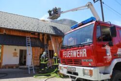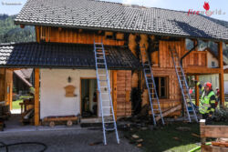 Teile des Hauses mussten geöffnet werden um letzte Glutnester und die brennende Isolierung des Holzriegelhauses ablöschen zu können. Personen waren nicht in Gefahr, Verletzte gab es zum Glück nicht.