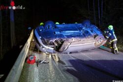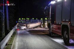 SCHARNSTEIN (OÖ): In Scharnstein überschlug sich am späten Abend des 6. Mai 2017 ein Pkw-Lenker mit seinem Auto. Die Feuerwehr Scharnstein führte die Aufräumarbeiten an der Unfallstelle durch.