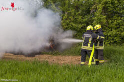 TRIBUSWINKEL (NÖ): In den Abendstunden des 7. Mai 20917 wurde die Freiwillige Feuerwehr Tribuswinkel zu einem Brandeinsatz alarmiert. Im Bereich eines Feldes hinter einem Windschutzgürtel waren mehrere Strohballen in Brand geraten.