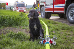 Anmerkung am Rande (etwas zum Schmuzeln): Der 8-jährige „Ernesto“ (letztes Bild) ließ sein Herrl, Gruppenkommandant Oberlöschmeister Dainel Schedewy, FF Tribuswinkel, bei diesem Feuerwehreinsatz nicht im Stich