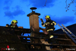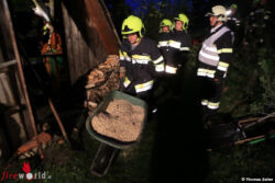 Zeitgleich öffnete mit Schanzwerkzeug ein weiterer Atemschutztrupp das Dach um von oben den Brand unter Kontrolle zu bringen. Um keine Glutnester zu übersehen, mussten die Pellets per Hand ausgeräumt werden, so Holzer weiter. Gerade noch rechtzeitig gelang es den Einsatzkräften, den Brand unter Kontrolle zu bringen und ein übergreifen auf das nahegelegene Wohnhaus zu verhindern.