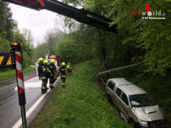 Eine Fahrzeuglenkerin war auf der regennassen Fahrbahn mit ihrem Geländewagen von der Fahrbahn abgekommen und blieb neben der Straße in einem Bachbett liegen. Die Lenkerin wurde unbestimmten Grades verletzt und musste von den Rettungskräften in das nächstgelegene Krankenhaus gebracht werden.