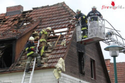 "Wir waren noch voll in den Tätigkeiten bei den Aufräumarbeiten von den gestrigen Überflutungen. Wir sind alarmiert worden zu einem Wohnhausbrand. Bei der Anfahrt waren schon Rauchschwaden zu sehen. Vom Brand selbst war der oberste Stock betroffen. Es hat hinten und vorne schon hinausgebrannt, Brandlast und Hitze waren enorm. Personen waren beim Eintreffen der Feuerwehr keine mehr in Gefahr. Der Hauseigentümer hat sich selbst retten können. Seine Pflegerin war zum Glück auch schon draussen, was anfangs kurz unklar war. Das Dach musste geöffnet werden, auch von innen," berichtet Thomas Mörtenbäck, Einsatzleiter der Feuerwehr Fraham.