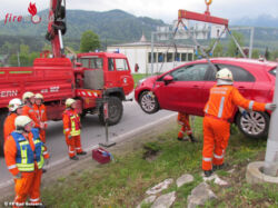 BAD GOISERN (OÖ): Aus einer Böschung musste die Freiw. Feuerwehr Bad Goisern mittels Kran einen Pkw bergen, nachdem dieser über einen Parkplatz hinaus gerollt war.