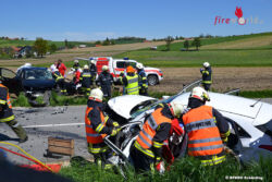 Die anderen Personen waren schwerer eingeklemmt, konnten jedoch auch kurze Zeit später nach einem intensiven Einsatz von hydraulischen Rettungsgeräten gerettet werden. Alle Personen wurden während der Personenrettung und auch im Anschluss von einem Notarzt und Sanitätern des Roten Kreuzes betreut. Aufgabe der Feuerwehr war auch die Unterstützung bei der Verkehrssperre, weil die Straße zur Gänze gesperrt werden musste. Im Anschluss wurde die Fahrbahn gereinigt und die Fahrzeuge dem Abschleppdienst übergeben. Die letzte Feuerwehr konnte gegen 16:30 Uhr wieder einrücken.