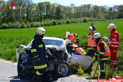 SANKT MARIENKIRCHEN (OÖ): Zu einem schweren Verkehrsunfall zwischen St. Marienkirchen und Eggerding wurden die Feuerwehren St. Marienkirchen, Hackenbuch und Suben am 11. Mai 2017 um 13:49 Uhr alarmiert.