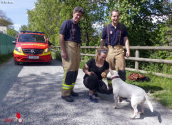 GRAZ (STMK): Die Grazer Berufsfeuerwehr wurde um 15.04 Uhr des 11. Mai 2017 zu einem Rettungseinsatz in der Mur alarmiert. Eine Notruferin meldete über das Handy eines Passanten, dass ihr Hund in die Mur gestürzt ist und abtrieb.