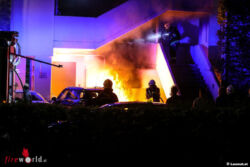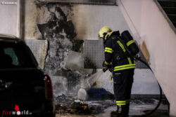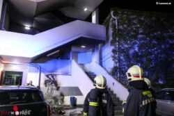 Kurz nach Mitternacht wurde die Feuerwehr zu einem Brand eines Müllcontainers auf dem Parkplatz eines Geschäftsgebäudes im Kreuzungsbereich der Rosegger- mit der Maximilianstraße alarmiert. Während sich die Feuerwehr noch auf der Anfahrt zum Einsatzort befand, löste auch die Brandmeldeanlage des Gebäudes Alarm aus. Auf dem Parkplatz des Gebäudes brannte unter einem Stiegenhaus ein Müllcontainer, die Flammen schlugen beim Eintreffen der Einsatzkräfte bereits an der Fassade hoch. Der Brand konnte rasch unter Kontrolle gebracht werden, die Räumlichkeiten wurden jedoch teils erheblich verraucht. Die Einsatzkräfte führten anschließend umfangreiche Belüftungsmaßnahmen durch.