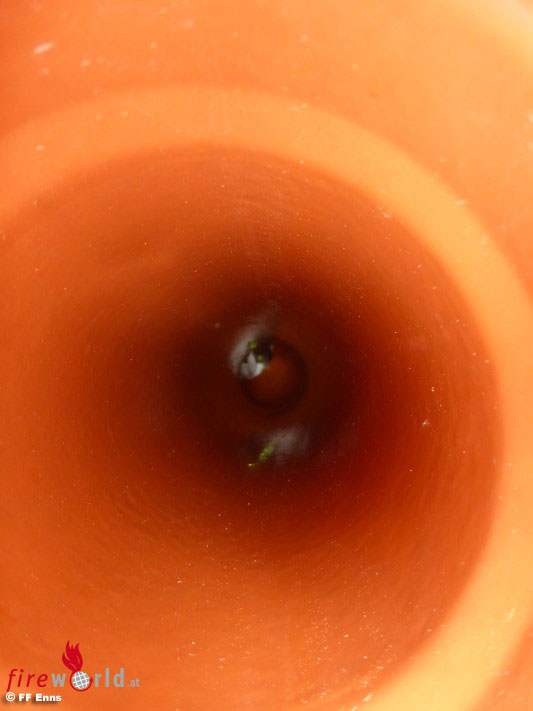 Da dieses Rohr ca. 1 m senkrecht in und unter der Bodenplatte verbaut war, gelang ihr das nicht. Auf dem Rücken liegend konnte die Feuerwehr Enns nur den Kopf und eine Pfote sehen. Die ersten Versuche, der Katze eine Leinen als Aufstiegshilfe hinabzulassen brachte kein Ergebnis. Nachdem der Besitzer des im Bau befindlichen Objekts eingetroffen war und der genaue Verlauf des Kanals bekannt war, wurde die Katze mit einem Schlauch aus dem Labyrinth im Boden wieder ins Freie „geschoben".