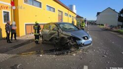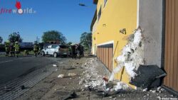 Ein Pkw kollidierte aus bisher unbekannter Ursache mit einer Hausmauer. Durch die Wucht des Zusammenstoßes wurde ein Rad ausgerissen und das Fahrzeug schwer beschädigt. Von den Einsatzkräften wurde die Einsatzstelle abgesichert sowie eine Umleitung über einen Parkplatz eingerichtet.