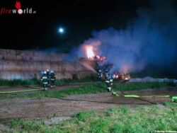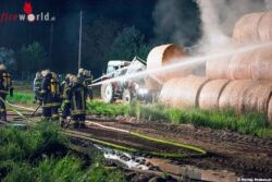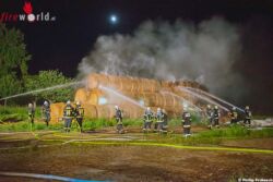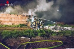 Ein Teil der gelagerten Strohballen war in Brand geraten. Nachbarn wurden auf den Brand aufmerksam und alarmierten die Feuerwehr. 125 Einsatzkräfte waren bis in die Morgenstunden gefordert, da die gelagerten Strohballen mit zwei Traktoren umgeschlichtet, zerkleinert und abgelöscht werden mussten. Verletzt wurde niemand.