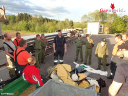 Am Firmengelände von Holzbau Schiffbänker unterrichtete FT-B Franz Ebner den theoretischen Teil und im Anschluss wurde durch die Kameraden vom GSF Zug die Praxis am Fahrzeug geübt. Diese Übung soll eine Reibungslose Zusammenarbeit mit den Spezialisten der FF Puchheim sicherstellen.