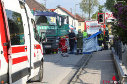WAIZENKIRCHEN (OÖ): Eine ältere Frau ist Dienstagvormittag, 16. Juni 2017, in Waizenkirchen (Bezirk Grieskirchen) von einem Lkw überrollt und schwerst verletzt worden.