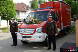 Bgm. Josef Niggas schilderte in einem historischen Rückblick die technische Entwicklung des Fahrzeugwesens und dankte den Kameradinnen und Kameraden für die Arbeit in der Wehr. Im Anschluss daran übergab er an HBI Markus Köppel offiziell die Fahrzeugschlüssel.
