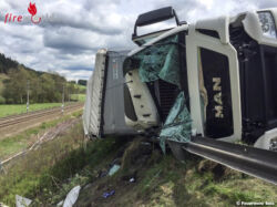 Ein Sattelschlepper touchierte aus unbekannter Ursache zwischen Kammern und Mautern in Fahrtrichtung Liezen die Leitschiene und kippte auf die Beifahrerseite um. Der tonnenschwere Lastkraftwagen kam stark deformiert auf der Straßenböschung zum Stillstand, wobei der Fahrer in der Kabine eingeklemmt wurde.
