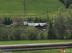 Sehr aufwendig gestalteten sich die Aufräum- und Bergearbeiten des Sattelschleppers, welcher mit Wasserbehältern beladen war. Die Pyhrnautobahn konnte erst gegen 21:30 Uhr wieder für den Verkehr freigegeben werden.