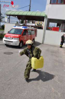 Sie liefen in Uniformen um die Wette, übten ihr Geschick beim Zielspritzen mit den Kübelspritzen und ihre Teamfähigkeit, als es darum ging, gemeinsam mittels Hebekissen und Unterlegskeilen eine Bierbank zu heben. Die Feuerwehrjugend zeigte ihr Können beim Umgang mit dem Tanklöschfahrzug und machte gemeinsam mit den Schülerinnen und Schülern Löschangriffe mit dem Hohlstrahl und dem Schaumrohr.