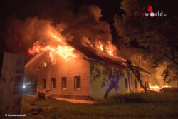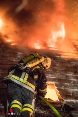Beim Eintreffen der ersten Feuerwehr hatte der Brand bereits auf das Dach des angebauten Wohnhauses übergegriffen und der Schuppen stand im Vollbrand. Mit Hilfe der nachgeforderten Einsatzkräfte gelang es rasch, die Brandintensität zu brechen und das Feuer unter Kontrolle zu bringen.