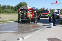 Aufgrund der anfänglichen Alarmmeldung "Motorradfahrer unter Lkw" wurden die Feuerwehr Pupping, Eferding (hydr. Rettungsgerät) und Alkoven (Kran) alarmiert.