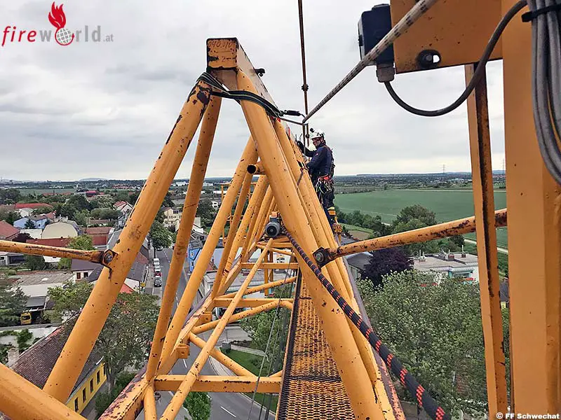 SCHWECHAT (NÖ): Am Samstag, den 20. Mai 2017, hatte die Freiwillige Feuerwehr Schwechat die Möglichkeit gemeinsam mit den Kameraden der Freiwillige Feuerwehr Schwechat-Kledering eine Übung zum Thema „sicheres Arbeiten in Höhen“ auf einer Baustelle in Kledering durchzuführen.