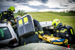 Zum Abschluss wurde am zweiten Übungsgelände ein Verkehrsunfall im Tunnel mit mehreren Fahrzeugen simuliert. Der SKG-Trupp musste dabei die Fahrzeuge durchsuchen, eine eingeschlossenen Person aus einem PKW retten und diese im Anschluss in einen sicheren Bereich transportieren.