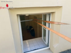 Der Mitarbeiter der Reinigungsfirma war dadurch in dem Arbeitskorb gefangen und konnte ohne Hilfe der Einsatzkräfte nicht mehr befreit werden. Die schnell angerückte Feuerwehr begann unmittelbar nach dem Eintreffen mit der Absicherung des Arbeitsgerätes um einen schlimmeren Unfall zu verhindern. So wurde der Steiger zuerst mittels Schleppstange und Spanngurten gegen Umstürzen gesichert. Danach konnte der Fensterputzer unverletzt mit einer Rettungsleine gesichert und über eine Steckleiter in das Stiegenhaus in Sicherheit gebracht werden.