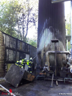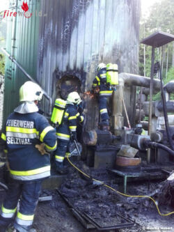 Nachdem kein Löschwasserbezug in unmittelbarer Nähe gegeben war, veranlasste die Einsatzleitung die Nachalarmierung der Feuerwehren Selzthal, Trieben, Trieben-Werk und Bärndorf. Die Löscharbeiten waren sehr aufwändig, da durch die starke Rauchentwicklung an der Anlage ein Löschangriff nur unter schwerem Atemschutz möglich war. Um zum Brandherd in der Maschine vordringen zu können, mussten sich die Einsatzkräfte außerdem erst mittels Winkelschleifer sukzessive vorarbeiten, sprich die Außenhaut des Silos aufschneiden und immer wieder mit der Wärmebildkamera Zwischenmessungen durchführen.