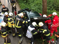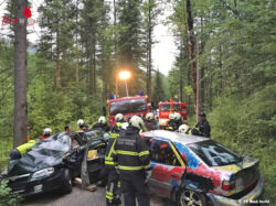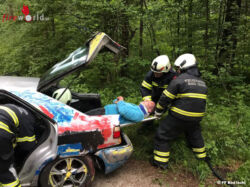 Oö: Drei Personen nach Verkehrsunfall eingeklemmt → Rotes Kreuz und Feuerwehr Bad Ischl übten miteinander