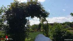 GLEISDORF (STMK): Zu einem nicht alltäglichen Einsatz wurde die Freiw. Feuerwehr Ludersdorf am sonnigen Samstagmittag, 27. Mai 2017, gerufen. Im Garten eines Einfamilienhauses in Flöcking baute ein Bienenvolk mit ihrer Königin innerhalb kürzester Zeit einen sehr mächtigen Bienenkrug auf.