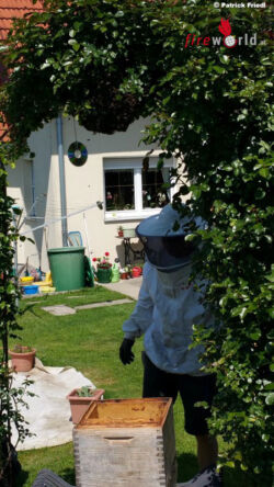 Mit Unterstützung eines Imkers wurde das komplette Bienenvolk mit ca 30.000 Tieren (Auskunft des Imkers) gerettet und verfrachtet. Das Bienenvolk wird nun zum Imker nach Hause gesiedelt. Die Bienen können ihre wertvolle Arbeit dort weiterverrichten.