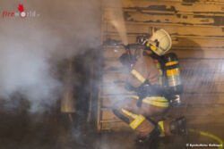 Die Feuerwehrkräfte mussten neben den Löschmaßnahmen des Carports auch das angrenzende Wohnhaus gegen einen Überschlag der Flammen abschirmen. Um dies zu verhindern, wurde eine sogenannte Riegelstellung aufgebaut. Mehrere Trupps, geschützt durch Atemschutzgeräte, waren im Einsatz. Um Glutnester ablöschen zu können, wurde die Dachhaut des Carports geöffnet. Drei in dem Carport eingestellte Motorräder brannten bei dem Feuer komplett aus.