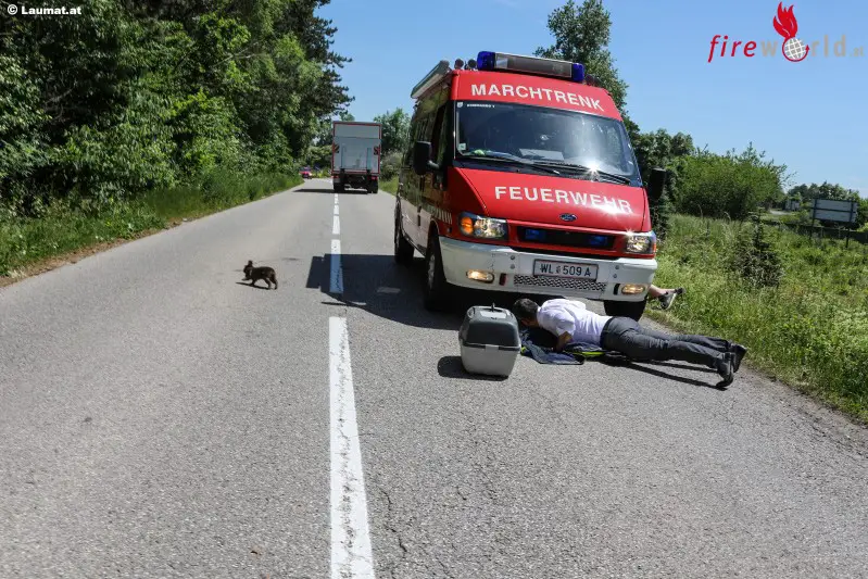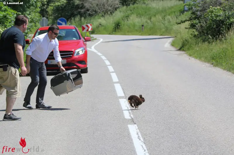 Oö: Feuerwehrmänner retten freilaufendes Kaninchen von vielbefahrener Straße in Marchtrenk
