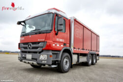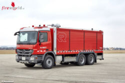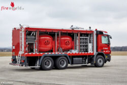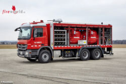 Für das zielgenaue Ausbringen von großen Mengen an Pulver eignet sich der RM25C Pulver Dachwerfer optimal. Der Werfer lässt sich von der Kabine aus bequem und intuitiv per Joystick steuern. Zusätzlich stehen auch noch zwei Pulver-Schnellangriffshaspeln zur Verfügung, etwa für kleinere bzw. punktuelle Einsätze. Im Herzen des Fahrzeugs sorgt die Minimax Pulverlöschanlage für die Versorgung von Werfer und Schnellangriffshaspel. Dank der schnell zu öffnenden großflächigen Rollläden an den Seiten des Fahrzeugs lassen sich alle wichtigen Beladungsgegenstände und Steuerungselemente in den Geräteräumen rasch und unkompliziert erreichen.