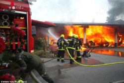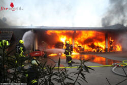 Nö: Verletzter und Großbrand nach Pkw-Reparatur → Einsatz von acht Wehren
