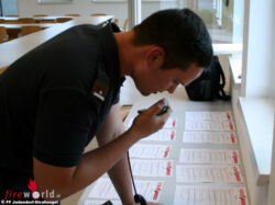 Nebenbei verlangten HBI Rainer Pongratz (hat die Übung ausgearbeitet) und LMdF Julian Kerstein (Funkleistelle) von den Damen und Herren, die zu den Stationen kamen, dass sie Pumpen- und Wasserförder-Leistungen ermittelten, anzufahrende Objekte definierten, um sicher zu gehen, dass die Adresse die richtige war und Direktrufe sowie den Direct Mode anzuwenden.