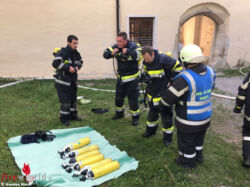 Aufgrund der immer wieder kehrenden Übungen in diesem Objekt konnte rasch ein zielführender Löschangriff eingeleitet werden. Das Hackschnitzellager wurde laut Auskunft von HBI Koch mit Wasser geflutet. Als Wasserbezug für diesen Vorgang diente ein eigens für das Objekt angelegter Löschwasserteich und zusätzlich ein Überflurhydrant im näheren Bereich. Insgesamt viermal mussten die Atemschutztrupps in der Folge in den Bunker absteigen, um den Brand endgültig zu bekämpfen, trotzdem reichten die Kräfte der eigenen Feuerwehr aus, um die Lage zu beherrschen.