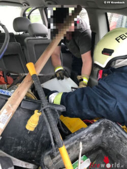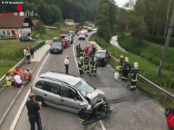 KRUMBACH (NÖ): Am 31. Mai 2017 wurde die FF Krumbach um 08:00 zu einem Verkehrsunfall in den Ortsteil Sägemühle gerufen. Zwei Pkw waren in einer Kurve frontal zusammengefahren. Beide Lenker wurden dabei verletzt.