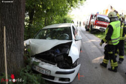 SCHLEISSHEIM (OÖ): Verletzt wurde Dienstagnachmittag, 30. Mai 2017, eine Autolenkerin bei einem Verkehrsunfall in Schleißheim (Bezirk Wels-Land), wo sie mit ihrem Pkw gegen einen Baum krachte.