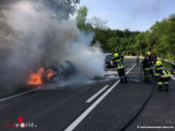 RIED AM RIEDERBERG (NÖ): Um 07:15 Uhr des 1. Juni 2017 wurde die Feuerwehr Ollern zu einem Fahrzeugbrand auf die Landesbundesstraße 1 am Riederberg in die Klosterkurve alarmiert. Entsprechend dem Tagesalarmplan rückten auch die Feuerwehren Ried am Riederberg und Elsbach zum Brandeinsatz der Alarmstufe 2 aus.