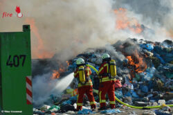 Am Donnerstagabend um 18.31 Uhr wurde die Bruchsaler Feuerwehr und die Feuerwehr Ubstadt-Weiher mit den Abteilungen Ubstadt und Weiher zu einem Feuerschein im Freien an die Kreismülldeponie gerufen. Bereits auf der Anfahrt zeigte die Rauchwolke den Einsatzkräften den Weg zum Einsatzort. Beim Eintreffen der Feuerwehr standen auf einer Freifläche etwa 40 Kubikmeter Sperrmüll in Flammen. Sofort wurde unter Atemschutz mit mehreren C-Rohren die Brandbekämpfung eingeleitet. Durch die Wärmestrahlung hatte sich das Feuer schon auf eine begrünte Fläche ausgebreitet, die aber rasch abgelöscht werden konnte.
