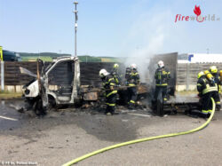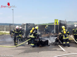ST. PÖLTEN (NÖ): In der Mittagszeit des 2. Juni 2017 gingen in der Bereichsalarmzentrale St. Pölten Notrufe ein, welche von einem Fahrzeugbrand auf der Westautobahn berichteten. Ein Klein-Lkw war auf dem Rastplatz Kesselhof in Brand geraten – die Rauchsäule war kilometerweit zu sehen.