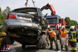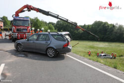Eines der beteiligten Fahrzeuge wurde über eine steine Böschung in eine darunterliegende Wiese geschleudert. Entgegen ersten Meldungen war zum Glück niemand im Fahrzeug eingeklemmt. Eine verletzte Fahrzeuglenkerin wurde mit dem ÖAMTC Notarzthubschrauber Christophorus 10 ins Krankenhaus geflogen. Die Feuerwehr sicherte die Unfallstelle ab. Mittels Kran musste eines der Unfallfahrzeuge von der Wiese wieder zurück auf die Straße gehoben und dem Abschleppunternehmen übergeben werden.