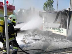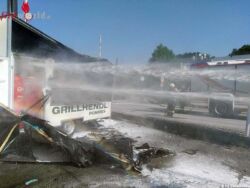 Oö: Explosionsgefahr bei Brand eines Grillhendlstandes