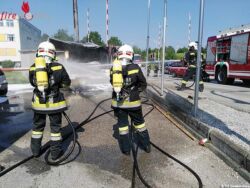 Der fahrbare Grillstand befindet sich auf dem Gelände des Lagerhauses Laakirchen und in örtlicher Nähe zu einer Tankstelle. Da der Gasgrill des Verkaufsstandes über zwei Gasflaschen mit je 30 Liter Inhalt versorgt wird, bestand bei den Löscharbeiten in der Erstphase höchste Explosionsgefahr.