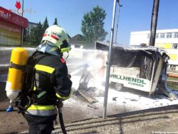 Durch die in Laakirchen üblichen, extrem kurzen Ausrückezeiten der Feuerwehr konnte auch diese Gefahr rasch gebannt werden. Der Brand wurde rasch abgelöscht, die Gasflaschen über längere Zeit gekühlt und mittels Wärmebildkamera ständig beobachtet. Am Verkaufsstand entstand Totalschaden, verletzt wurde niemand.