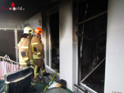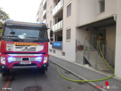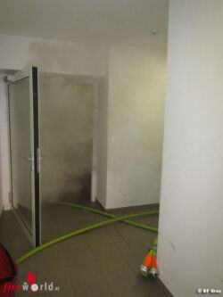 Im Erdgeschoß des fünfgeschossigen Gebäudes stand eine Wohnung in Brand und es kam hofseitig zu einer massiven Rauchausbreitung über die Gebäudefassade. Die Brandbekämpfung erfolgte von einer Löschgruppe mittels C-Rohr unter schwerem Atemschutz. Parallel dazu wurden mit zwei Hochleistungslüftern das Stiegenhaus sowie der Aufschließungsgang zu den Wohnungen im EG und die Brandwohnung selbst entraucht.
