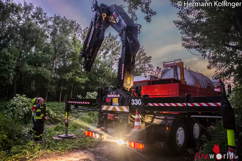 Der verwendete und geliehene Übungs-Pkw ist übrigens für den Einsatz im Gewässer modifiziert. Das heißt, es befinden sich kein Getriebe, kein Motor oder gar Betriebsflüssigkeiten darin. Somit geht von diesem Fahrzeug keinerlei Umweltverschmutzungsgefahr aus. Es wurde nach Abschluss der Übung sodann mit dem Kran des Kranfahrzeuges wieder aus der Aschach gehoben.
