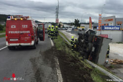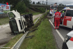 Fast zeitgleich kam ein Lkw im Bereich der Ortseinfahrt Zauchen von der Fahrbahn ab und stürzte auf den darunterliegenden Begleitweg. Die Hauptfeuerwache rückte unverzüglich zu diesem Unfall ab. Am Einsatzort konnte festgestellt werden, dass der Lenker unverletzt geblieben war. Durch die Feuerwehr wurde die Unfallstelle abgesichert und ausgeflossenes Motoröl gebunden. Die Bergung erfolgte durch ein Abschleppunternehmen.
