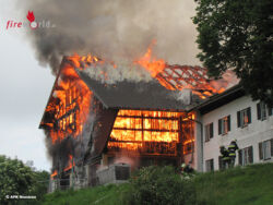 OBERHOFEN AM IRRSEE (OÖ): Am Donnerstag, den 6. Juni 2017, wurde um 10:18 Uhr wurde die Feuerwehr Oberhofen zu einem Heubodenbrand nach Laiter alarmiert. Bereits um 10:24 Uhr wurde Alarmstufe 3 mit ingesamt 11 Feuerwehren aus dem Abschnitt Mondsee und dem benachbarten Salzburg alarmiert.