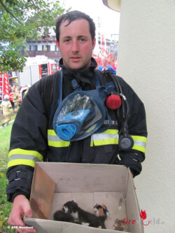 Nach kurzer Zeit wurden von einem Atemschutztrupp fünf kleine Kätzchen gerettet. Wie durch ein Wunder konnten nach "Brand unter Kontrolle" noch sieben Kühe durch Atemschutztrupps aus dem Stall gerettet werden, welche sich direkt unter dem brennenden Bergeraum befanden. Somit wurden über 25 Kühe gerettet. Leider verstarb ein frischgeborenes Kalb im Rauch.